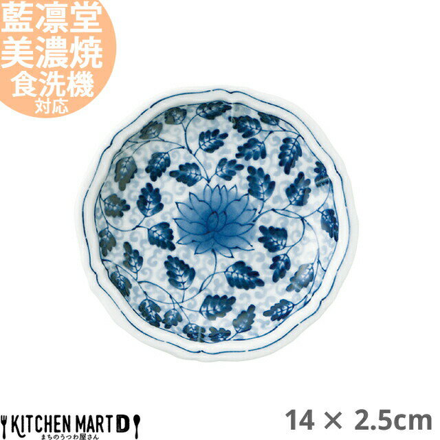 [商品名称]【楽天スーパーSALE 10% 割引】藍凛堂 藍唐草 RI輪花四〇深皿 丸皿 14×2.5cm 美濃焼 和食器 国産 日本製 プレート 小皿 醤油皿 深い おしゃれ 染め付け 青 陶器 磁器 丸 丸型 食器 中華 洋食 和食 おしゃれ 料亭 カフェ レンジ対応 食洗機対応