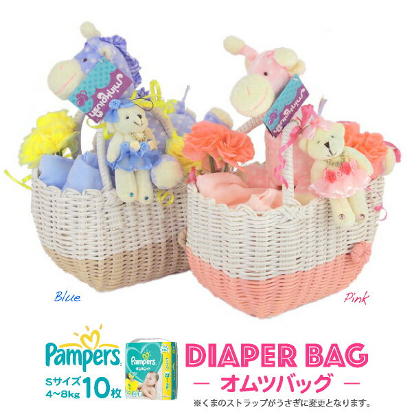 [キャッチコピー]ミンクプラッシュとオムツをカゴバッグに詰め込みました!おむつケーキおむつバッグ 出産祝い・誕生祝い