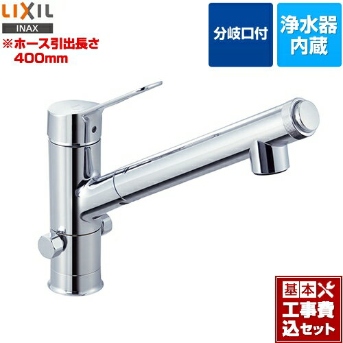 [商品名称]【楽天リフォーム認定商品】【工事費込セット(商品+基本工事)】[JF-AJ461SYXB-JW] LIXIL キッチン水栓 オールインワン浄水栓 AJタイプ 浄水器内蔵シングルレバー混合水栓 分岐口付 ホース引出し・シャワー付タイプ 一般地 【送料無料】