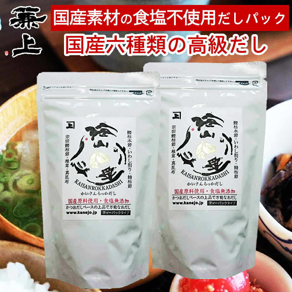[商品名称]兼上 だし 無添加 高級 海山六香 だしパック 7g×15P×2袋 食塩不使用 無添加 添加物不使用 無塩 減塩 だし 出汁 国産 かつお いわし しいたけ 昆布 さば 宗田かつお 出汁パック 天然 離乳食 育脳 子供 赤ちゃん 粉 粉末 ミネラル補給 送料無料 カネジョウot