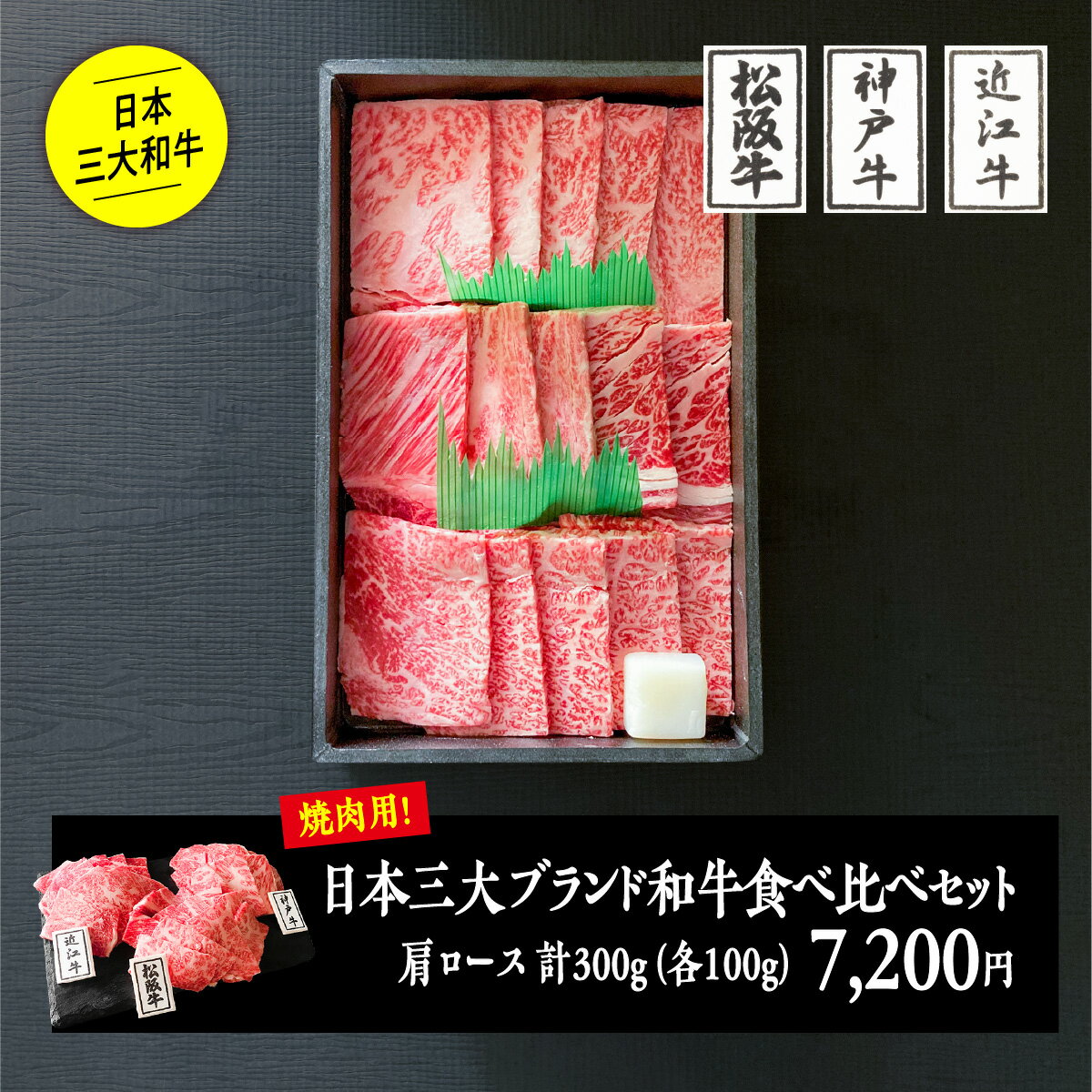 [商品名称]★10%OFFクーポン★日本三大ブランド和牛食べ比べセット300g(焼肉用)/ 化粧箱入り 松阪牛肩ロース100g +神戸ビーフ肩ロース100g+近江牛肩ロース100g 厳選 ブランド牛 神戸牛 黒毛和牛 御祝 内祝 贈答品 詰め合わせセット 焼肉セット お肉ギフト お歳暮 御歳暮