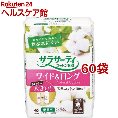 [商品名称]サラサーティ コットン100 ワイド&ロング おりものシート(40枚入*60袋セット)【サラサーティ】