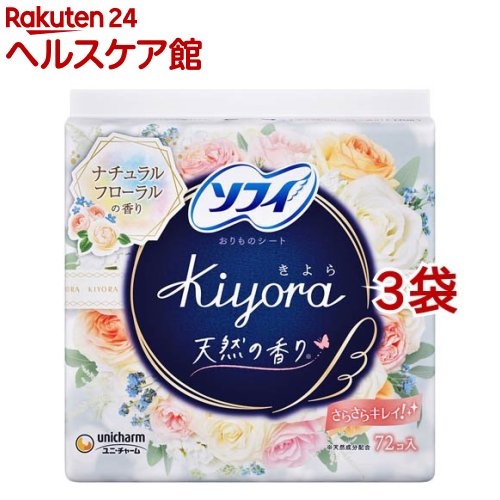[商品名称]ソフィKiyoraナチュラルフローラル パンティライナー おりものシート(72枚入×3袋セット)【ソフィ ライナー】