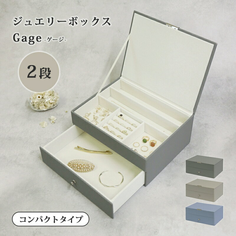 [商品名称]宝石箱 ジュエリーボックス 2段 引き出し 大容量 アクセサリー 収納 箱 収納箱 ジュエリーボックス Gage-ゲージ- 2段 宝石 指輪 イヤリング ピアス ブレスレット ネックレス 時計 宝飾品 コンパクト