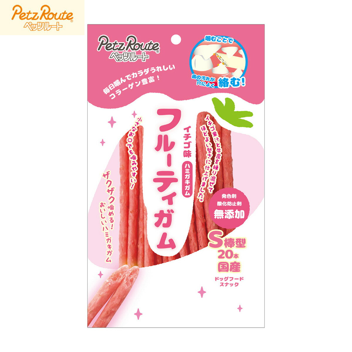 [商品名称]【2000円OFFクーポン!&店内ポイント最大56倍!スーパーSALE!】ペッツルート 犬用おやつ フルーティーガム イチゴ S棒型 20本 国産 無添加