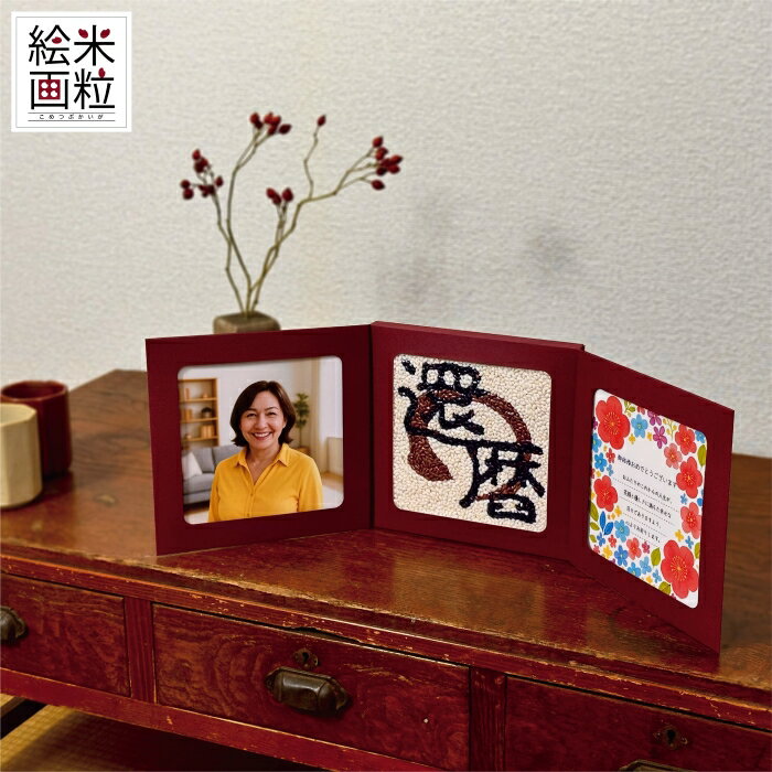 「米粒絵画 還暦祝い 写真・メッセージカード付」プレゼントや贈り物に も