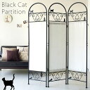 パーテーション おしゃれ アイアン 衝立 間仕切り 折りたたみ 黒猫