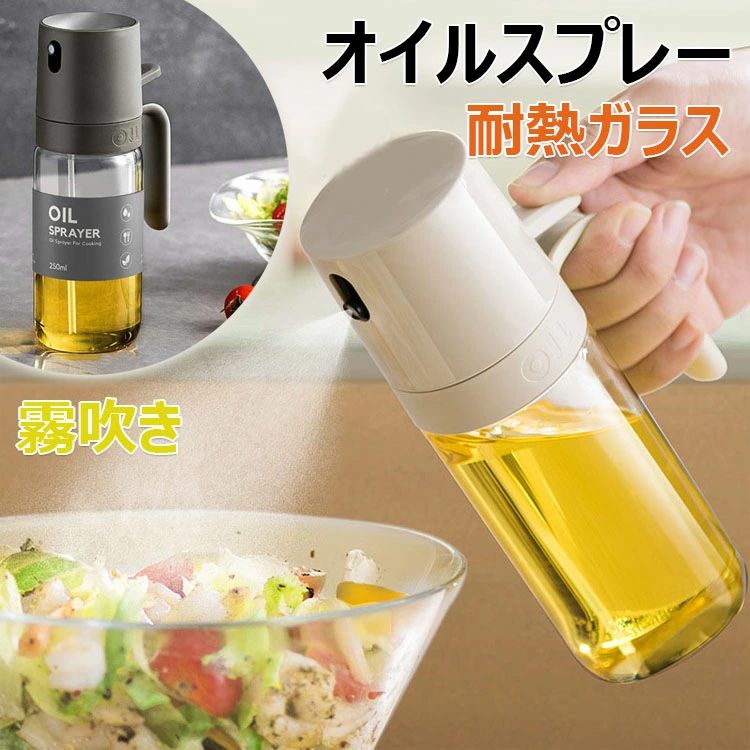 [キャッチコピー]オイルスプレー 霧吹き 調味料入れ オイル差し 油いれ容器 透明 漏れ防止 キッチン用品 キャンプ オイルポット 醤油スプレー 料理用 耐熱ガラス オリーブオイル霧化ボトル 250ml