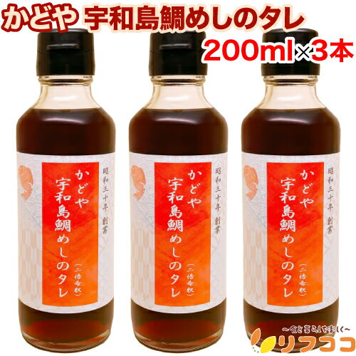 [商品名称]【楽天スーパーSALE期間限定 セール特集ページ設置中!】かどや 宇和島鯛めしのタレ 200ml×3本セット 宇和島の郷土料理 宇和島鯛めし 常温 万能タレ しょうゆ加工 国産 愛媛の老舗料理店 老舗 本格的 味 簡単 再現 万能 タレ