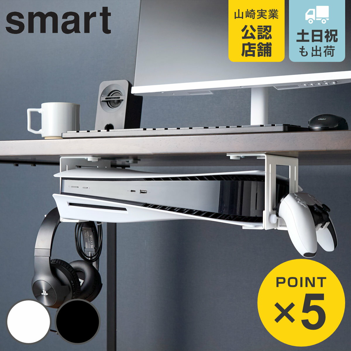 [商品名称]山崎実業 smart 可動式デスク下ゲーム機ホルダー スマート ( 4903208101899 スマートシリーズ デスク下ホルダー ゲーム機ホルダー 可動式 可動式ホルダー デスク下 ゲーム機 ホルダー テーブル下収納ラック )