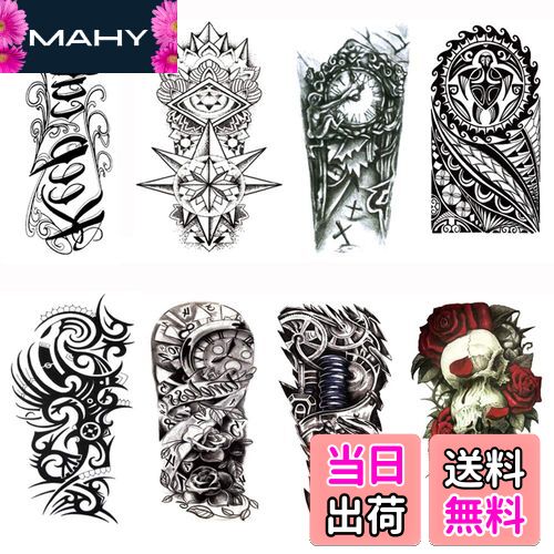[商品説明]商品情報商品の説明主な仕様 【セット内容】タトゥーシール 大判 8枚セット、8種類、各1枚。【サイズ】:約15cm×21cm(絵柄台紙部分)。br【含まれるもの】英語 文字(Keep Calm) 、トライバル 太陽の塔、時計 花柄、トライバル 黒、トライバル 腕、時計 黒 薔薇 、サイボーグの前腕、髑髏 (スカル ドクロ )赤 バラ。br★ご注意:タイトルの下にあるブランド「Yesallwas」をクリックし、より多くのスタイルとサイズのタトゥーシールをYesallwasのストアショップで表示できます。br【材質】:ポリエステル 高品質の紙 、裏面:EVA樹脂 接着剤。【持ち時間】防水加工のため、お風呂など通常は4-7日程度保つ事が出来ます。 手足等のよく動かす所と間接部分は1,2日程度が目安です。br【貼るだけ簡単】 腕や足、体や背中等、お好きな場所に。