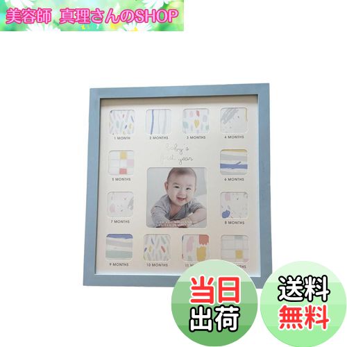 [商品名称]【送料無料】umely ベビーフォトフレーム 赤ちゃん写真立て 12ヶ月 ベイビー 写真立て ギフト 出産祝い ピンク ブルー ホワイト 女の子 男の子 (ブルー)