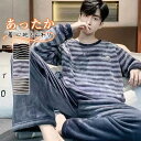 パジャマ メンズ 長袖 ルームウェア ボーダー柄 部屋着 もこもこ 肌に