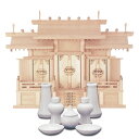 [商品名称]神棚 屋根違い三社 中 神具のセット 榊立4寸×2 水玉1.8寸 平次3寸×2 皿2.5寸×2 神鏡2寸 榊1対 【20251201】