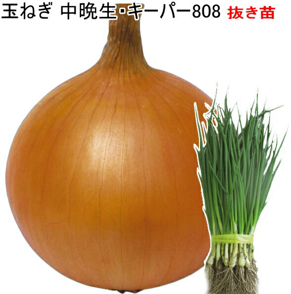 [商品説明]●大口(1品種5,000本以上)注文の連絡先 → email : haba-seed@xa2.so-net.ne.jp fax:0265-36-5536 タマネギ 中晩生種 【 キーパー808 】 抜き苗 貯蔵性が高くおいしい中晩生多収種! 中生種の中でも貯蔵用に適している。大玉320g程で、病気に強く作りやすい品種です。 ●貯蔵性が高い秋撒き中晩生の黄タマネギです。 ●一球330g程度で肥大良く、円形~豊円形に揃います。 ●草姿は半立性で葉折れが少なく、茎葉の生育が旺盛、根張りも良好です。 ●球外皮の張り良く、長期の貯蔵も可能で、機械収穫、選別、長期出荷に適しています。 ●ラッキーに次ぐ良食味品種で、生食用としてお薦めです。