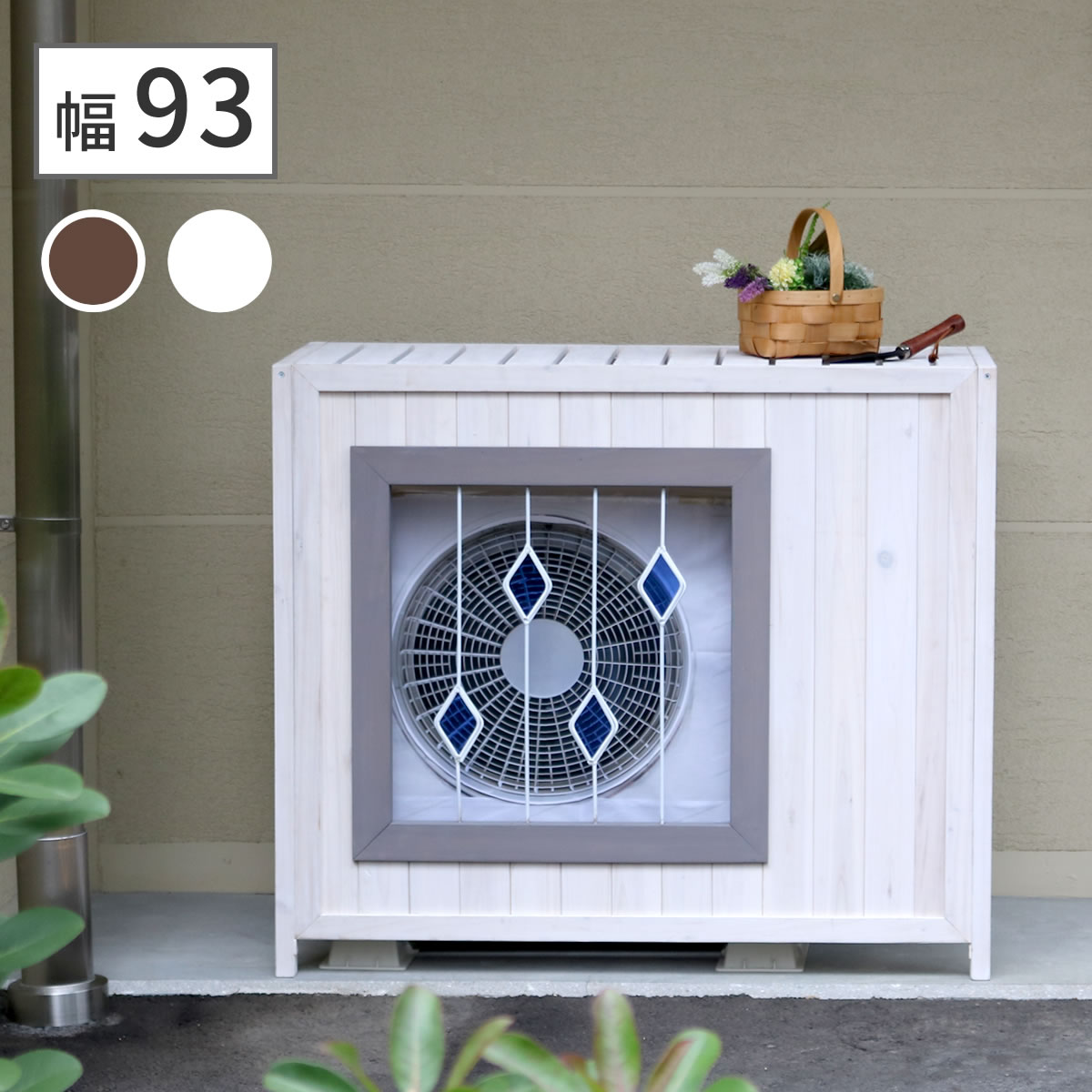 [商品説明]商品情報組立区分組立式組立目安時間2人で20分※ご注意下さい有効内寸:幅約87.5×奥行約36.5×高さ約76cm※室外機カバーは有効内寸が大変重要です。室外機のでっぱりも含めたサイズを計測し、ご自宅の室外機のサイズに合うかどうか、ご確認ください。ステンドグラス室外機カバー「glass」(グラス) AC-DG930 室外機 カバー エアコンカバー 室外機ラック ラック 木製 アンティーク 日よけ 目隠し 天然木×ステンドグラスのデザイン。どこか懐かしく、可愛らしい空間に エアコン室外機の生活感を消してくれる、ステンドグラスの透け感が美しい室外機カバーです。雰囲気のいいお庭にイメージチェンジできるだけでなく、上にプランターやガーデン用品が置けるので、デッドスペースだった空間を有効活用できます。1.優雅で温かみのあるお庭に。目隠しとしてだけでなく、オブジェとして鑑賞したいような、雰囲気のあるデザイン。プランターを飾ったり、ガーデニングの作業台としても。洗濯カゴの一時置きにもいいですよ。2.扱いやすく、組み立てかんたん。組み立てたら、かぶせるだけ。軽量で移動もらくらく。※ホワイトは真っ白ではなく、木目が透けて見えるウォッシュホワイトです。※天然木材を使用しているため、開梱時や設置後にかかわらず、色褪せ・色むら・木部のひび割れが発生する場合があります。あらかじめご了承ください。※汚れたら水拭きしていただけます。 5