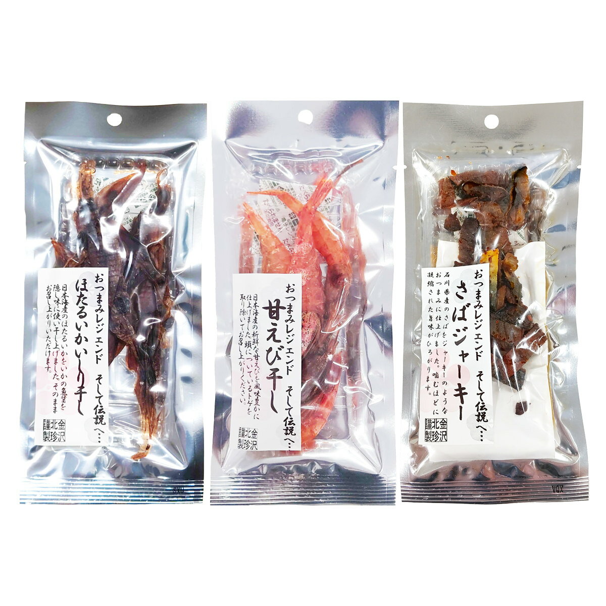[商品名称]おつまみレジェンド ほたるいか 甘えび干し さばジャーキー 3種セット おつまみ 珍味 お取り寄せ 石川 日本海産 乾きもの お酒のあて つまみ 干物