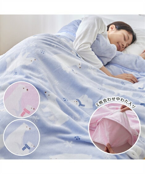 [商品名称]【全品対象クーポン配布中★先着100名 50%OFF★先着3,000名 25%OFF!12/4 20時開始】毛布 ブランケット 寝具 なめらかソフトなあったか2枚合わせ中わた入り 白くま柄 秋 冬 あったか ペールピンク系/ペールブルー系 | シングル | ニッセン nissen