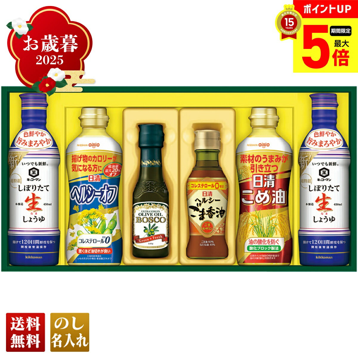 [商品名称]【12/1まで最大ポイント5倍】 お歳暮 御歳暮 早割 冬ギフト 帰歳暮 ギフト プレゼント 送料無料 ギフト 2025 日清 バラエティオイル&キッコーマンしぼりたて生しょうゆギフト 「NK-30」 調味料 油 食油 オイル オリーブオイル 日清 ボスコ エキストラバージンオイル