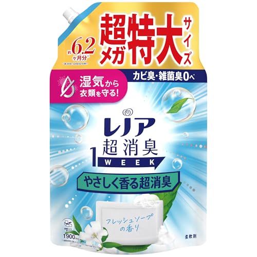 商品価格:2278円 レビュー件数:0 レビュー平均:0 店舗名: NRFオンラインショップジャンルID: 559647< 購入ページを表示> [商品名称]Lenor レノア 超消臭1WEEK 柔軟剤 やさしく香る超消臭 フレッシュソープの香り 詰め替え 1900mL [大容量][商品説明]-/詰め替え 1900mL/-・PatternName:フレッシュソープSize:詰め替え 1900mL・パッケージ個数:1・新しくなったレノア超消臭1WEEKは、カビ臭・雑菌臭0へ(*1)。湿気から衣類を守る *1 柔軟剤未使用と比較。すべてのニオイを0にするわけではありません。・レノア超消臭1WEEKは、80%以上の消費者が実感した、1週間ずーっと続く消臭力(*1)。 かけっぱなしの洗面所のタオルや、ニオイが気になるけれど毎日は洗えない、シーツや枕カバーまで、1週間ずーっと爽やか(*1)。 *1 保管状態で・レノアの消臭系柔軟剤は、みなさんのお洗濯のニオイ問題やお悩みを解決すべく、無臭化テクノロジーや1週間(*1)ずーっと続く消臭技術など、消臭効果に関する研究を重ねて来ました。おかげさまで、防臭タイプ柔軟剤の中で売上No.1。 *1 保管状態で・レノアなら、夜干しでも速乾(*1)&消臭。消臭成分が浸透、夜の間にじっくり消臭するから、夜干しなのに、天日干し以上のさわやかさに。 *1 綿のタオルで検証。・選べる6種類の香り。 お求めの消臭力、香りに合わせて、商品紹介 湿気から衣類を守る カビ臭・雑菌臭0へ*1 強い香りでごまかさない 1週間ずーっと消臭*2 花粉ブロック*3 静電気ブロック 部屋干しでも生乾き臭を防ぐ 洗濯槽のニオイを防ぐ 衣類の抗菌*4 赤ちゃんの衣類もやわらかく *1 柔軟剤未使用と比較。すべてのニオイを0にするわけではありません *2 保管状態で *3 静電気を防ぐ効果による *4 すべての菌の増殖を抑えるわけではありません レノア 超消臭1WEEK 柔軟剤 やさしく香る超消臭 フレッシュソープの香り 原材料・成分 界面活性剤(エステル型ジアルキルアンモニウム塩)、安定化剤、香料 < 購入ページを表示>