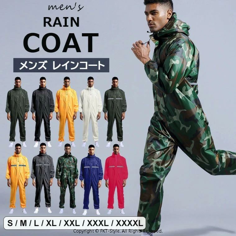[商品名称]レインコート 防水つなぎ レインウェア 反射テープ ありなし メンズ ロング 防水 防油 ジャンプスーツ 雨具 かっぱ カッパ 大きいサイズ 雨 対策 シンプル フード付き ハイポンチョ 全10色