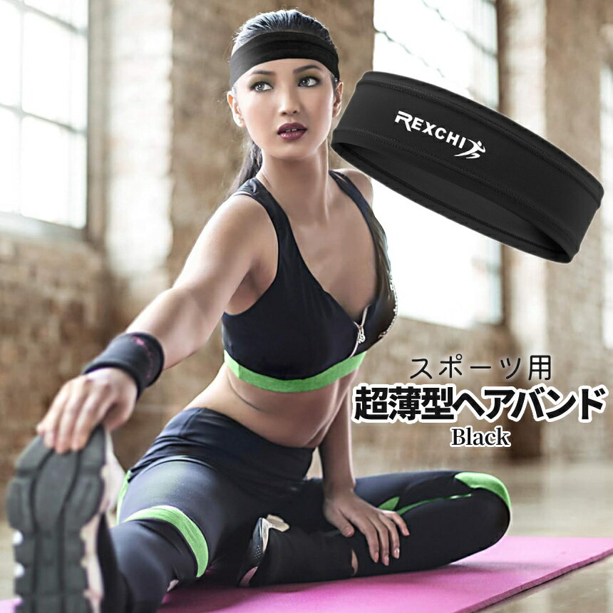 汗防止バンド black ブラック スポーツ用 ヘッドバンド 汗 止め