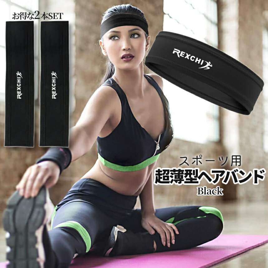 汗防止バンド black 2枚セット ブラック スポーツ用 ヘッドバンド