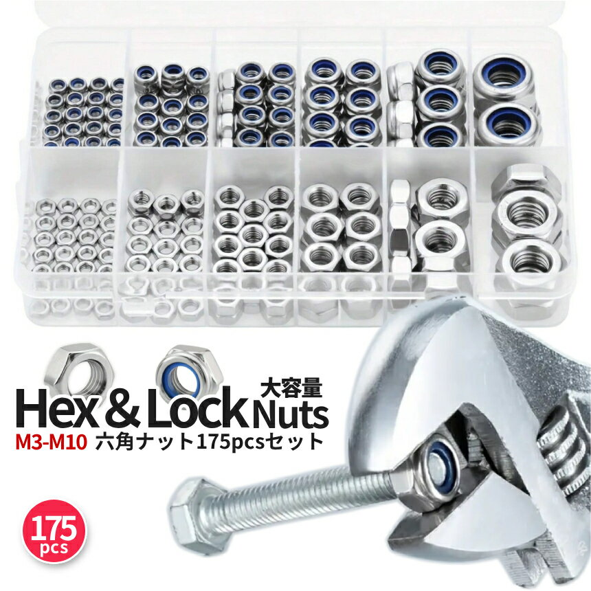 [キャッチコピー]【六角ナットM3-M10お得パック】\Hex & Lock 175pcs/