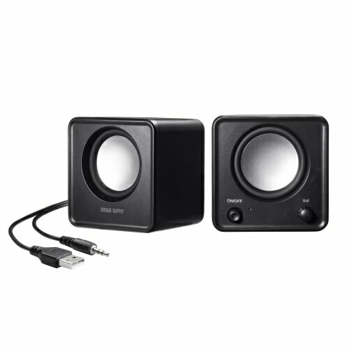 [商品説明]送料規定・納期はこちらでご確認下さい。【主な特長】コンパクトサイズで場所を選ばず設置ができるUSB電源スピーカー!●電源をUSBポートから供給するUSB給電方式のスピーカーです。↓AC電源を必要としないのですっきりと配線でき、簡単に設置できます。↓3.5mm接続なのでモニターなど様々な機器に接続ができます。↓↓●設置場所を選ばない超コンパクトサイズ↓モニター下や机上ラック上など省スペースに設置ができます。↓↓●超コンパクトサイズでもパワフル。↓小さいサイズながら、最大出力6Wでしっかりとした音が出ます。↓↓●背面にパッシブラジエーター搭載!↓低音を強化するパッシブラジエーターを製品背面に搭載。↓↓●操作のしやすいボタン配置!↓前面に操作ボタンがあるのでスピーカーの後ろに手を伸ばさなくても操作ができます。↓電源と音量ボタンが独立しているので、音量の再調整の手間も省けます。↓↓■実用最大出力:6W↓(3W+3W)↓■周波数特性:60-15,00Hz↓■スピーカー形式:密閉型フルレンジスピーカー↓■スピーカーサイズ:約2インチ(直径50mm)↓■ロードインピーダンス:4Ω↓■入力端子:USB Aコネクタオス↓■電源:USBポートより供給(DC5V 500mA以上)↓■外形寸法:約W70*D57*H70mm
