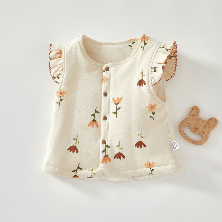[商品名称]ベスト 幼児 ベビー キッズ 子供服 女の子 秋冬 花柄 60cm 70cm 80cm 90cm フリル袖 フレア袖 防寒 新生児 赤ちゃん用 ベージュ 冬物 出産祝い あったか 子供服 こども服