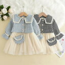 [商品名称]セットアップ キッズ 子供服 女の子 秋冬 長袖 トップス スカート ワンピース 襟付き レース フリル 通園 通学 千鳥柄 千鳥格子 90 100 110 120 130