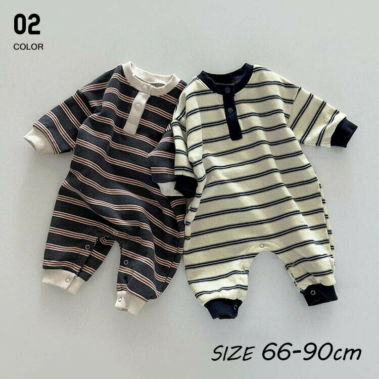 ロンパース 赤ちゃん ベビー ベビー服 秋冬 長袖 ストライプ カエルロ