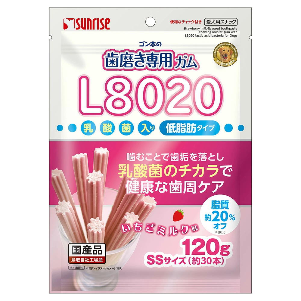 [キャッチコピー]超小型~小型犬と幼犬用★サンライズ ゴン太の歯磨き専用ガム SSサイズ L8020乳酸菌入り いちごミルク味 低脂肪 スナック 歯周デンタルケア 健康な口内環境に マルカン