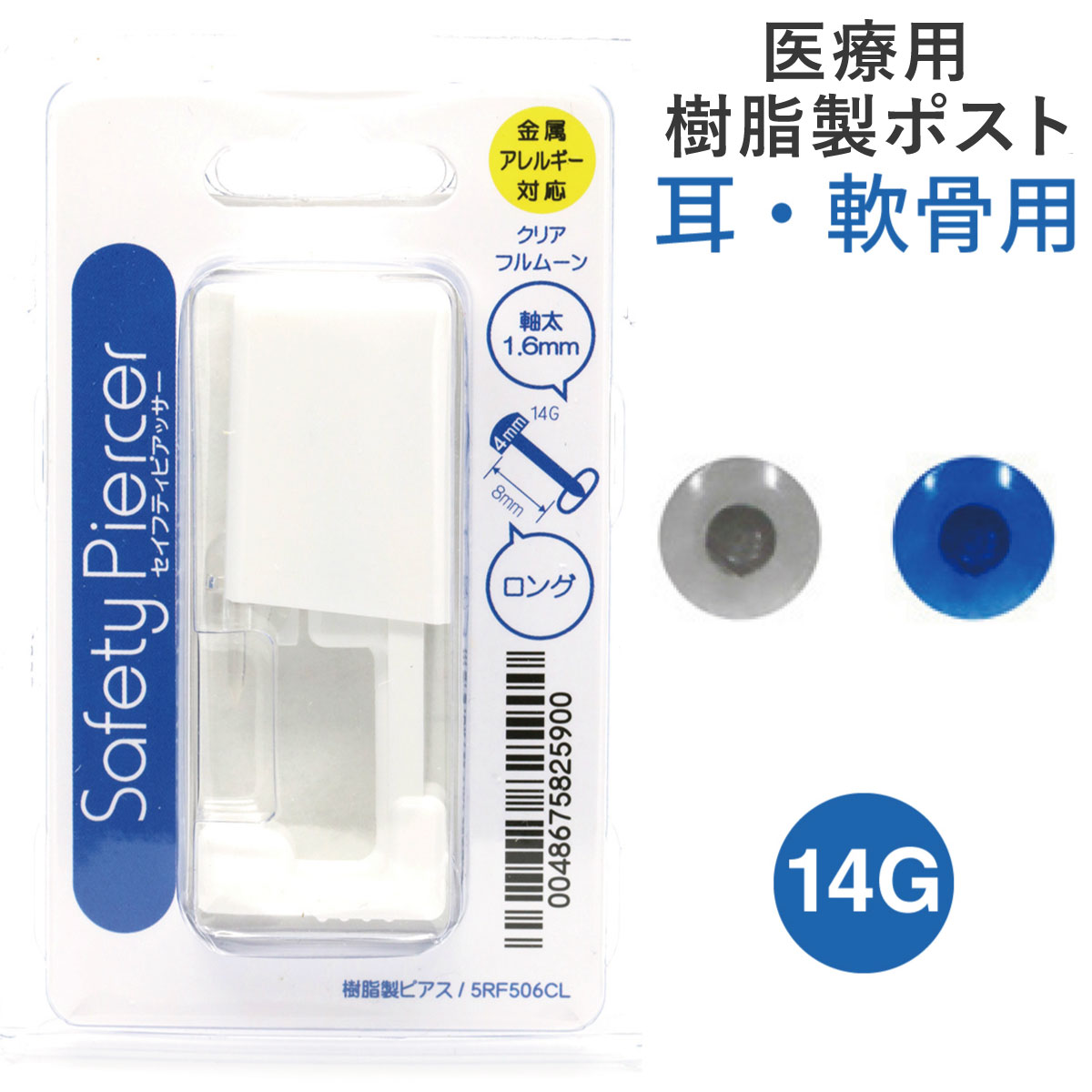 [商品名称]ピアッサー 14ゲージ 医療用樹脂製ファーストピアス 片耳 軟骨用 メール便 送料無料 金属アレルギー対応 プレゼント 春夏秋冬 大人気 JPS