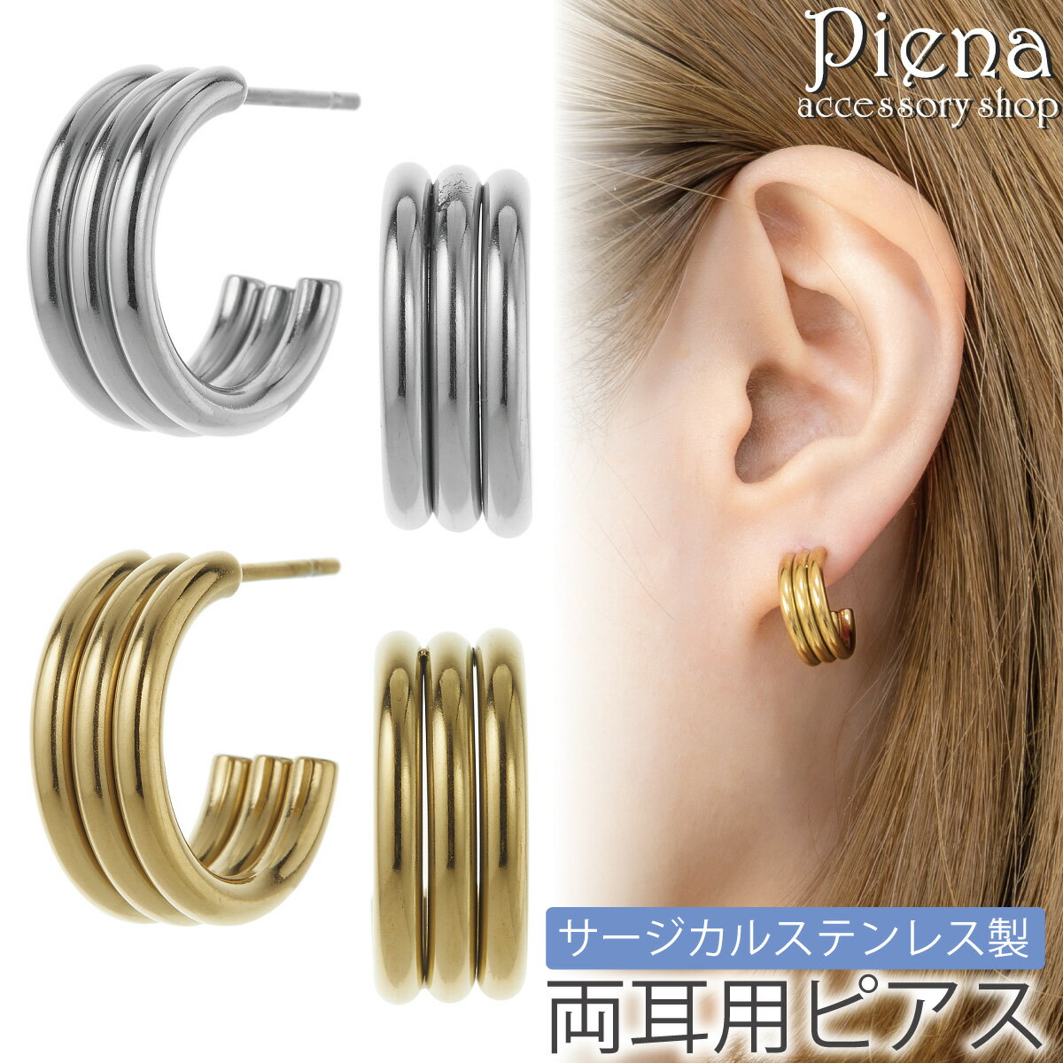 ピアス つけっぱなし レディース サージカルステンレス 3本ライン C型
