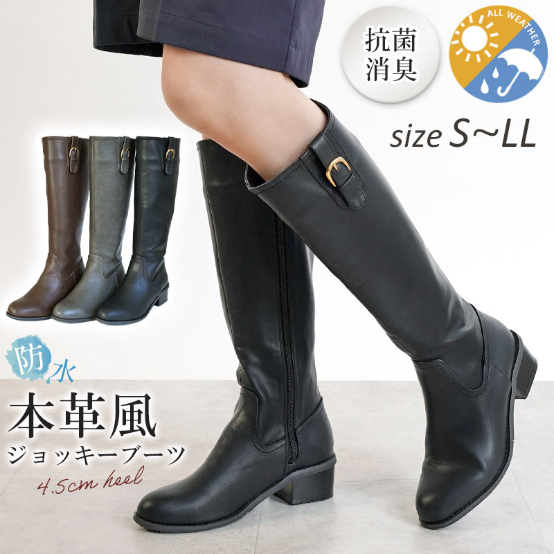 防水機能付き!本革風ジョッキーブーツ