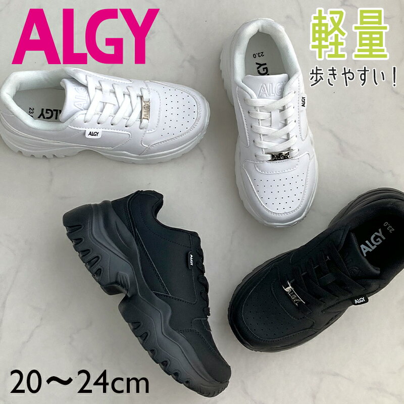 [キャッチコピー]ALGY アルジー 2024新作 キッズ ジュニア 女の子 スニーカー 厚底 おしゃれ 黒 白 ブラック ホワイト