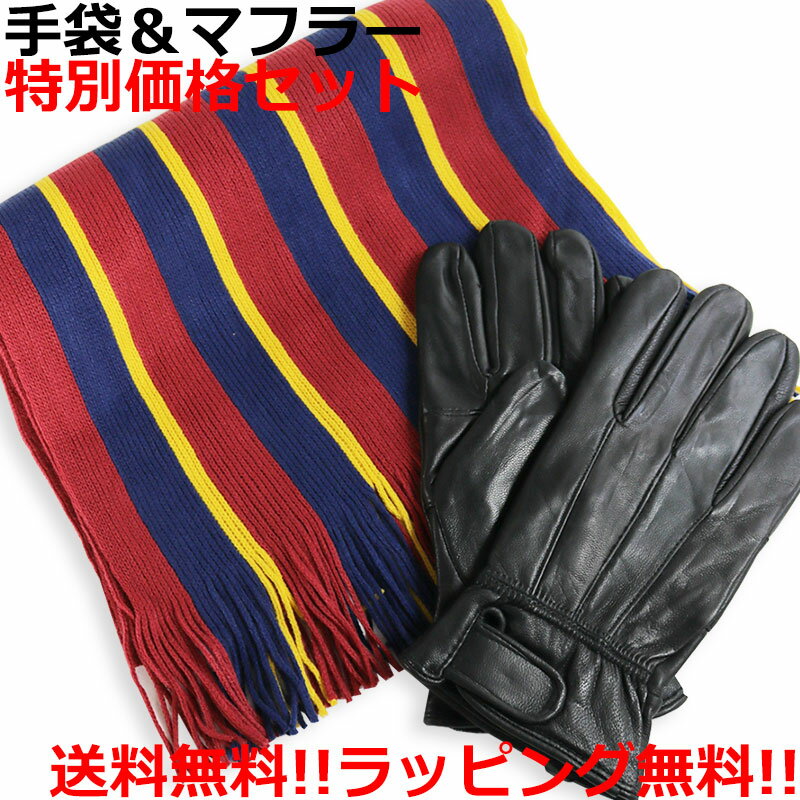 手袋 マフラー 2点 ギフトセット ラッピングセット 本革手袋 メンズ