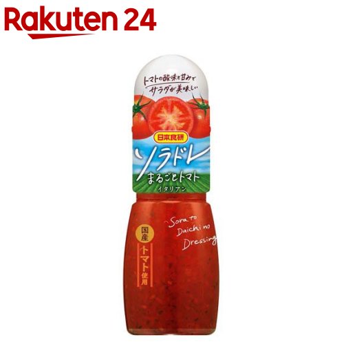 [商品説明]お店TOP>フード>調味料・油>ドレッシング>イタリアンドレッシング>ソラドレ まるごとトマト (300ml)【ソラドレ まるごとトマトの商品詳細】●固形感のある国産トマトを使用し、トマト本来の酸味と甘みを活かしたイタリアンタイプのドレッシング。●1本あたり、約1/2個のトマト使用。●サラダだけじゃなく、肉や魚・パスタにもよく合います。【品名・名称】分離液状ドレッシング【ソラドレ まるごとトマトの原材料】トマト(国産)、食用植物油脂、醸造酢、玉ねぎ、砂糖、食塩、醤油、レッドベルペッパー、パセリ/ソルビトール、調味料(アミノ酸)、増粘剤(キサンタン)、パプリカ色素、香辛料抽出物、(一部に小麦・大豆を含む)【栄養成分】1食(15g)当たり:エネルギー29kcal、たんぱく質0.1g、脂質1.9g、炭水化物2.8g、食塩相当量0.5g この表示値は目安です。【アレルギー物質】小麦・大豆【保存方法】開栓前は直射日光をさけ、常温で保存してください。【原産国】日本【発売元、製造元、輸入元又は販売元】日本食研リニューアルに伴い、パッケージ・内容等予告なく変更する場合がございます。予めご了承ください。日本食研799-1582 愛媛県今治市富田新港1丁目3番地0120-917-181広告文責:楽天グループ株式会社電話:050-5577-5043[調味料]
