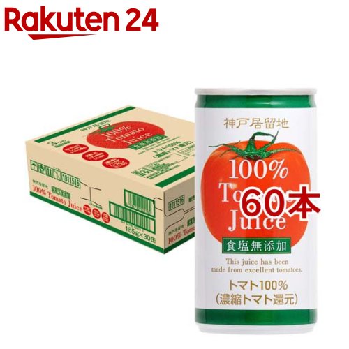 [商品名称]神戸居留地 完熟トマト100% 缶 無塩 保存料 着色料 不使用 食塩無添加(30本入×2セット(1本185g))【神戸居留地】