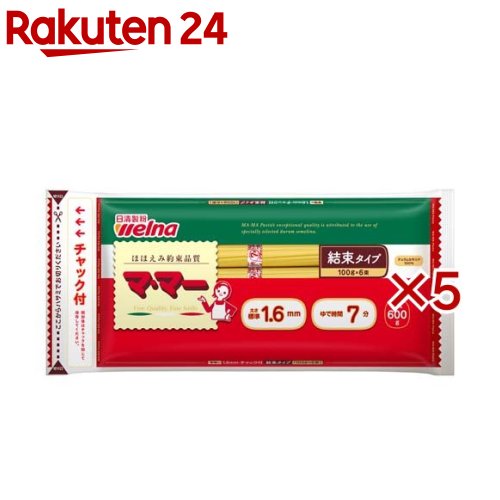 [商品説明]お店TOP>フード>穀物・豆・麺類>パスタ>スパゲティ(直径1.6mm-2.2mm)>マ・マー チャック付結束スパ 1.6mm (600g×5セット)【マ・マー チャック付結束スパ 1.6mmの商品詳細】●デュラムセモリナ100%使用の、ロングパスタ●お好みのどんなソースにもよく合うスパゲティです。●保存に便利なチャック付【品名・名称】スパゲッティ【マ・マー チャック付結束スパ 1.6mmの原材料】デュラム小麦のセモリナ(国内製造)【栄養成分】100g当り:エネルギー 362kcal、たんぱく質 12g、脂質 2g、炭水化物 74g、食塩相当量 0g【アレルギー物質】小麦【保存方法】高温多湿の場所、直射日光を避けて保存してください。【注意事項】・細かい斑点はデュラムセモリナに由来するものです。品質には問題ありません。【原産国】日本【ブランド】マ・マー【発売元、製造元、輸入元又は販売元】日清製粉ウェルナ※説明文は単品の内容です。リニューアルに伴い、パッケージ・内容等予告なく変更する場合がございます。予めご了承ください。(ママー 0.6kg)・単品JAN:4902110304121日清製粉ウェルナ101-8441 東京都千代田区神田錦町1-250120-244-157広告文責:楽天グループ株式会社電話:050-5577-5043[麺類/ブランド:マ・マー/]