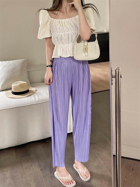 大人のカジュアルを提案 九分ズボン 弾力大 ロングパンツ フォールド 気