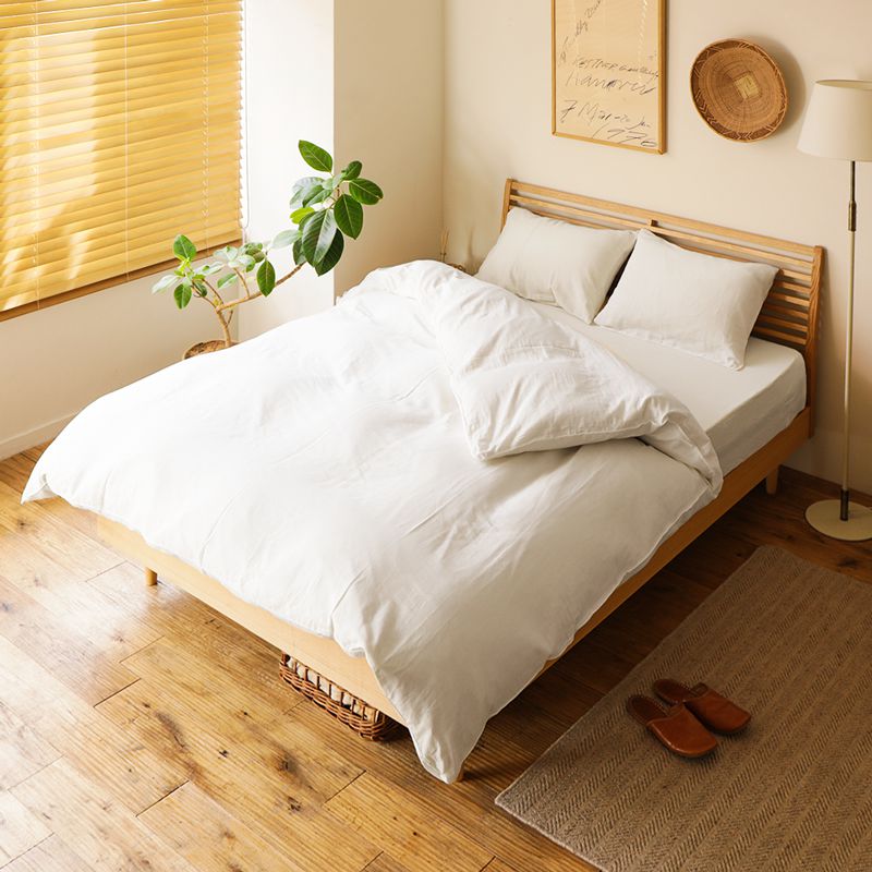 [商品説明]SPECスペック サイズ 【掛け布団カバー】シングル:150cm × 210cm【ベッドシーツ】シングル:100cm × 200cm × 30cm【枕カバー】Mサイズ:43cm × 63cm枕用 カラー ホワイト クミン ミルク スレート インディゴ ※インディゴは、販売終了した商品の為、入荷の予定はございません。 素材 綿 100% 備考 洗濯機可、乾燥機不可掛け布団カバー、ベッドシーツ、枕カバーの3点セット販売です。【掛け布団カバー】ファスナー式ズレ防止ひも付き(8ヶ所)【ベッドシーツ】ボックスシーツタイプ【枕カバー】封筒式素材の特性上、毛玉が発生する場合がございますが、数回お洗濯いただくことにより落ち着いてきます。 こちらの商品は、サイズ展開がございます。下記リンクより、他サイズのページをご覧いただけます。 シングル用 3点セットは現在のページです。 セミダブル/1人用 3点セットはこちら セミダブル/2人用 4点セットはこちら ダブル用 4点セットはこちら カテゴリー:寝具カバーセットセットで揃えて、ベッドにまとまりを。枕カバー・掛け布団カバー・ボックスシーツのセットガーゼ素材を使った寝具シリーズ「DOUBLE GAUZE(ダブルガーゼ)」。今回は、枕カバー、掛け布団カバー、ボックスシーツのセットをご用意。素材に使われているのは、ケガをした時に誰もがお世話になったことがある、いわゆるあのガーゼです。よだれかけやロンパースなど、ベビー用品にもよく使われます。つまり、それほど安心感と信頼感がある素材なのです。と、魅力的な話を続けましたが、正直今まで寝具のカバーにこだわったことはありませんでした。色は気にしていましたが、寝てる時は意識もない訳ですし、別になんだっていいかなと。でもこのDOUBLE GAUZEを使ってみて、寝具カバーの大切さを知りました。それほどガーゼには、実にたくさんの魅力が詰まっているのです。それぞれの生活スタイルに合わせた、 4タイプのセットをご用意しました。シングル用のセットは、シングルサイズ用の掛け布団カバーとボックスシーツ、そして、枕カバーのMサイズ1つを組み合わせています。シングルサイズの掛け布団、シングルサイズのマットレス、通常サイズの枕にぴったりとフィットする寝具3点セットです。セミダブル用のセットは、ライフスタイルに合わせた「セミダブル/1人用」と「セミダブル/2人用」をご用意しました。セミダブルの掛け布団カバーは、リセノを含めて、寝具メーカーがあまり作らないので、実は選べるものがあまりないんです。なので、のちのちのカバーの選択肢を増やす意味でも、セミダブルベッドを購入する際には、シングルサイズかダブルサイズの掛け布団のどちらかを購入いただくことを、リセノではお勧めしています。「セミダブル/1人用」は、セミダブルベッドを1人で使う方向け。セミダブルベッドに、シングルサイズの掛け布団を使うことを想定しています。画像のように、シングルサイズの掛け布団でも、十分セミダブルで使えます。「セミダブル/2人用」は、セミダブルベッドを2人で使う方向け。セミダブルベッドに、ダブルサイズの掛け布団を使うことを想定しています。小さめの寝室での2人暮らしだと、ダブルベッドは大きすぎるけど、シングルで2人はさすがに狭いと思います。ですので、セミダブルに2人で寝たいという方は、掛け布団だけをダブルサイズにしておくと、布団の隙間もなくなって、ぐっすりと寝られます。「セミダブル/2人用」には、Mサイズの枕カバーも2人分セットしていますので、届いてすぐに快適にお使いいただけます。ダブル用のセットは、二人暮らしの方に最適な睡眠生活を過ごしていただけるように、掛け布団カバーとボックスシーツはダブルサイズを。また、枕カバーはMサイズを2つ組み合わせています。ダブルガーゼの枕カバーは、顔に触れるお肌の負担を軽減してくれます。顔の肌に直接触れる枕カバー。寝心地に加えて気になるのが肌への負担。特に肌がデリケートな方は、化学繊維を使用しているか、していないかも選ぶ基準として重要になってくるのではないでしょうか。コットン100%の天然素材を採用した枕カバーは、この悩みも軽減してくれます。ダブルガーゼの掛け布団カバーは、お肌に優しく、肌触りも最高です。枕カバーに続いて、肌に触れる面積の広い掛け布団カバー。こちらも寝心地や睡眠にとても大きく関わってきます。生地に化学繊維が混ざっていると、どうしてもパリッとした硬い肌触りと肌に馴染まない感覚があります。このダブルガーゼの掛け布団カバーなら、柔らかくて肌に優しい感触で、安心性の高い寝心地を与えてくれます。ダブルガーゼのボックスシーツは、年間通して快適さが続きます。寝具で年間を通して使うのが、枕カバーとボックスシーツですよね。その中でも、最も体と触れる面積が広いのが、ベッドシーツです。体に触れる面積が広いということは、快適でなければ不快感が増大。そこで、前述でもお伝えしたガーゼ素