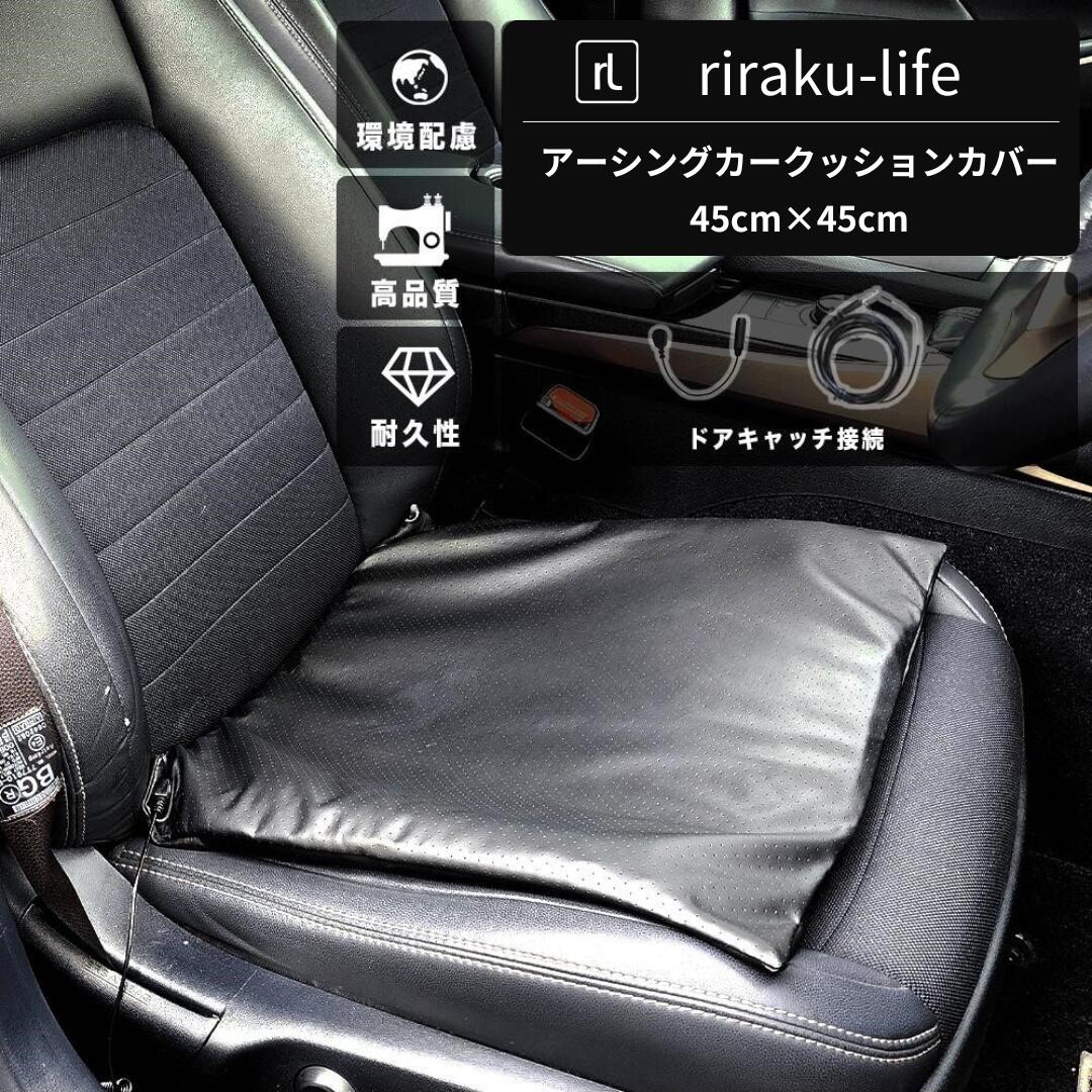 [商品名称]アーシング カークッションカバー (PUレザータイプ) 45cm×45cm [ドアキャッチ接続] 車用 効果 電磁波対策 快適 理想のアース コード付き ドライブ アーシング健康法 健康グッズ リラクリフェ