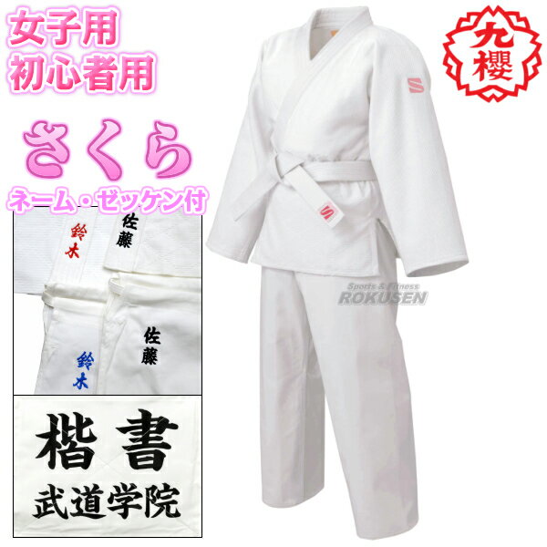 [商品名称]【九櫻・九桜】さくら 女子用一重織柔道着(背継仕上) 授業用 JSL 上下帯セット ネーム刺繍・ゼッケン付き 柔道衣 九櫻柔道着 授業用柔道着 上下セット ネーム刺繍 早川繊維