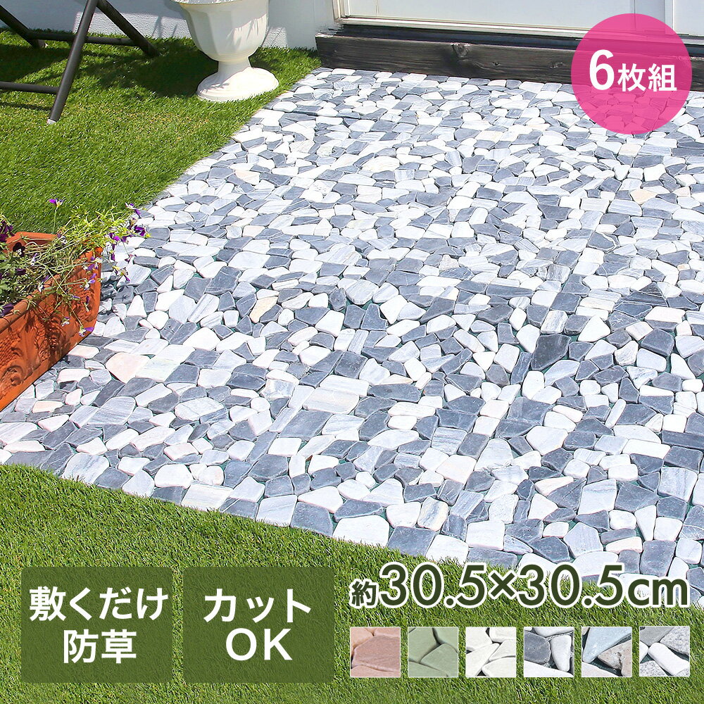 [商品名称]【 エントリーでポイント最大10倍 11/14(金)10:00〜11/16(日)23:59まで 】庭 タイル 庭タイル 庭マット 天然石マット 6枚組 30.5cm×30.5cm 谷村実業 | ガーデン サイズ調整 遮光 おしゃれ 北欧 リフォーム DIY タイル マット 屋外 防草シート 防草マッ