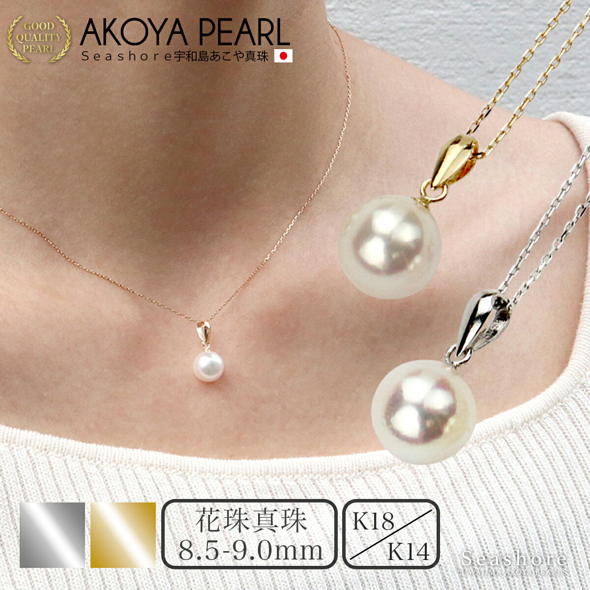 [商品名称]花珠真珠 一粒 バチカン ペンダント ネックレス ホワイト レディース 無料プレゼント付【8.5-9.0mm】K18YG / K18WG K14WG 0.2φ 小豆チェーン アコヤ 保管用ケース付 5スター鑑定付 Seashore【送料無料】