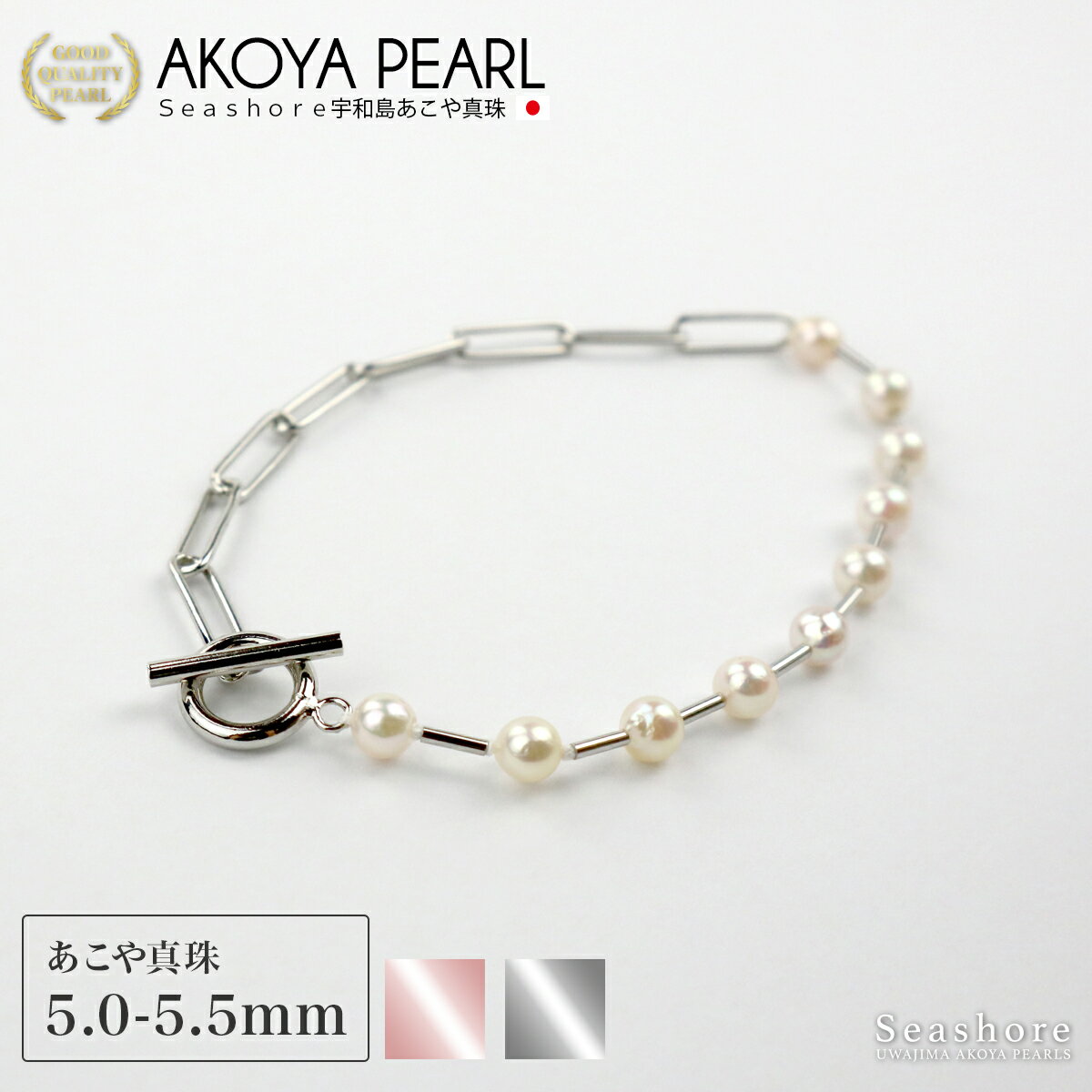 [商品名称]真珠 ブレスレット ステーション レディース 【5.0-5.5mm】 シルバー / ピンクゴールド マンテル 真鍮 アコヤ あこや パール おしゃれ シンプル プレゼント カジュアル Seashore シーショア 【送料無料】