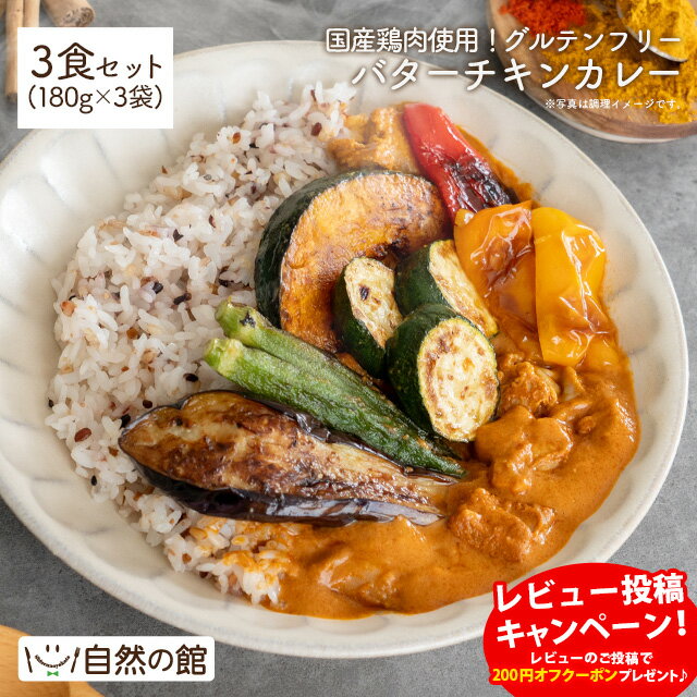 [商品名称]\今だけ★20%OFFクーポン/カレー グルテンフリー バターチキンカレー 180g×3袋 国産鶏肉 小麦不使用 レトルト スパイス 無添加 保存料不使用 グルテンフリー 非常食 保存食 レトルト 無添加カレー gfk 【レビュー投稿でクーポンプレゼント】