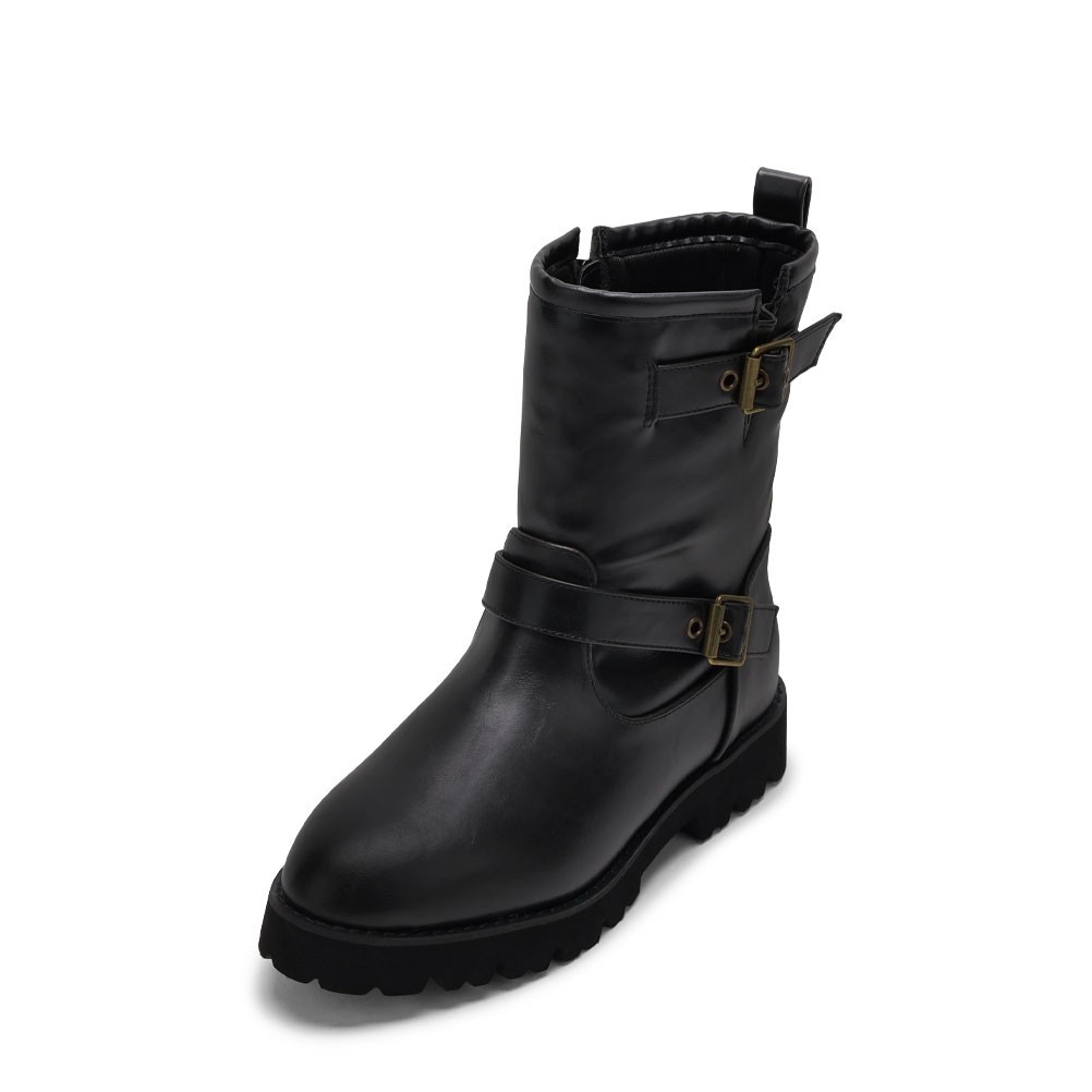 [商品名称]マシュガール masyugirl mg3021-4E レディース靴 靴 シューズ 4E相当 ブーツ エンジニアブーツ 厚底 ボリュームソール 幅広 ゆったり 着脱簡単 ベルト ファスナー ジップアップ ブラック